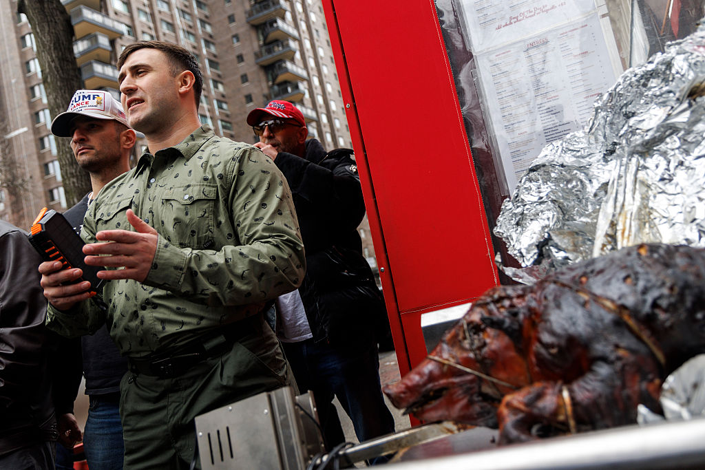 Far-right activist Jake Lang held an Islamophobic rally outside Gracie Mansion. / Matthew Hoen/NurPhoto via Getty Images